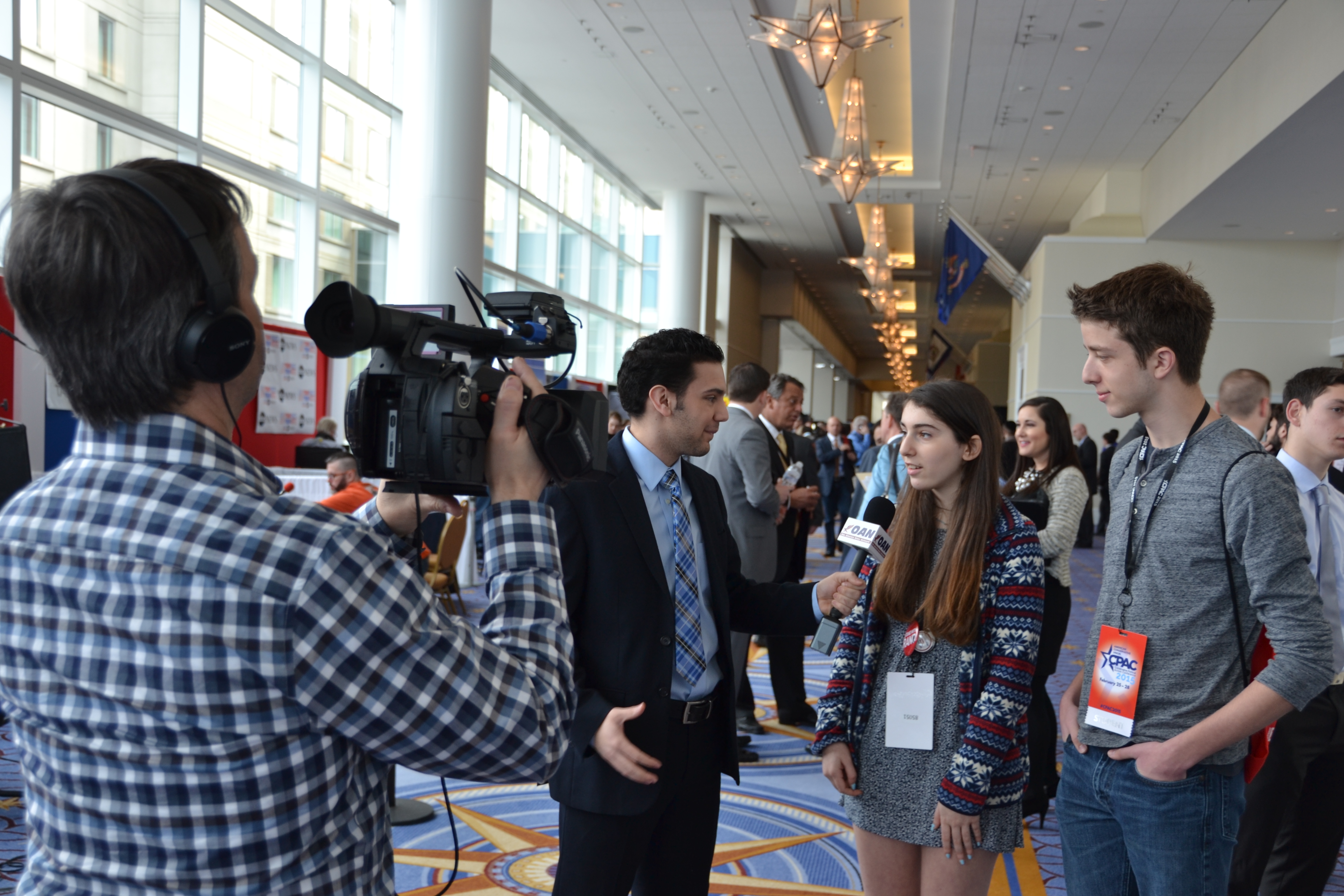 Photo by David Fishman: Hollis Lehv (V) and Nick Garber (VI) being interviewed by Drew Brody for One America News Network