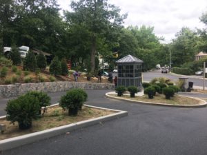 To accompany the arrival of the new security company, Summit Security, the security booth has also moved locations. The administration driveway (the driveway in front of the arch) has been remodeled to allow a better placement of the booth. Yellow and white lines, as well as a low railing to direct cars, have been added to the new driveway.