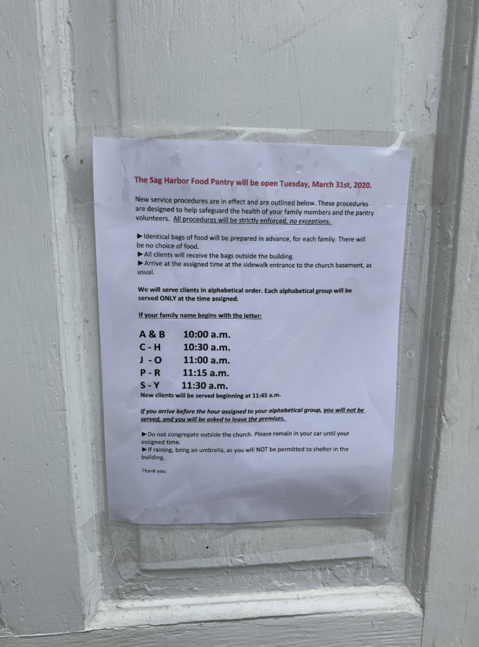 Notice posted on the door of the Sag Harbor Food Bank