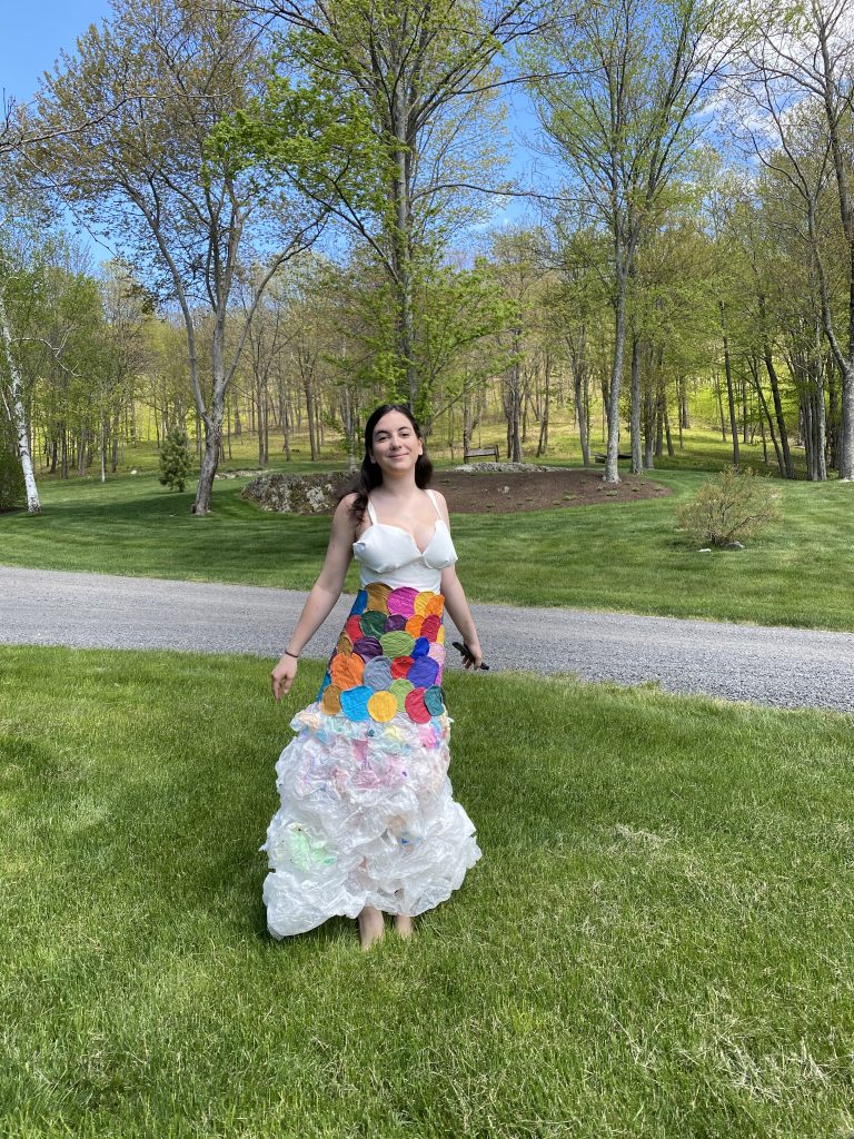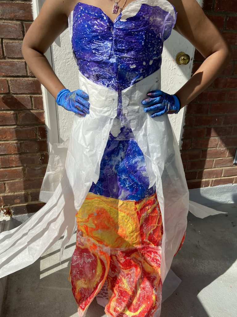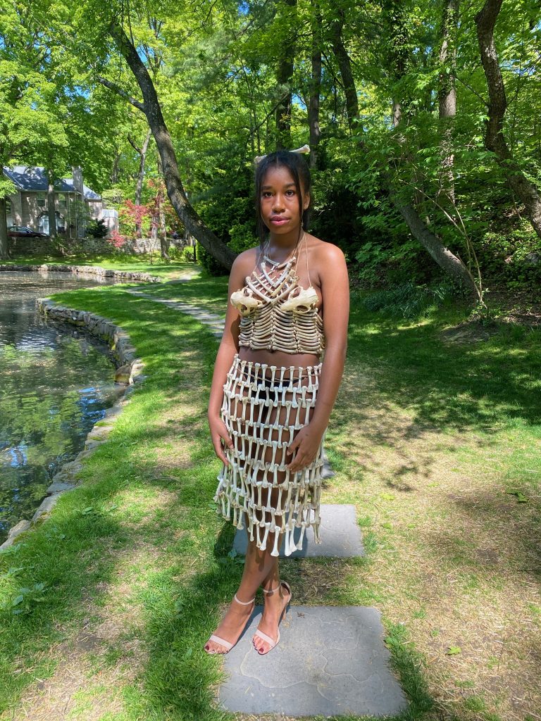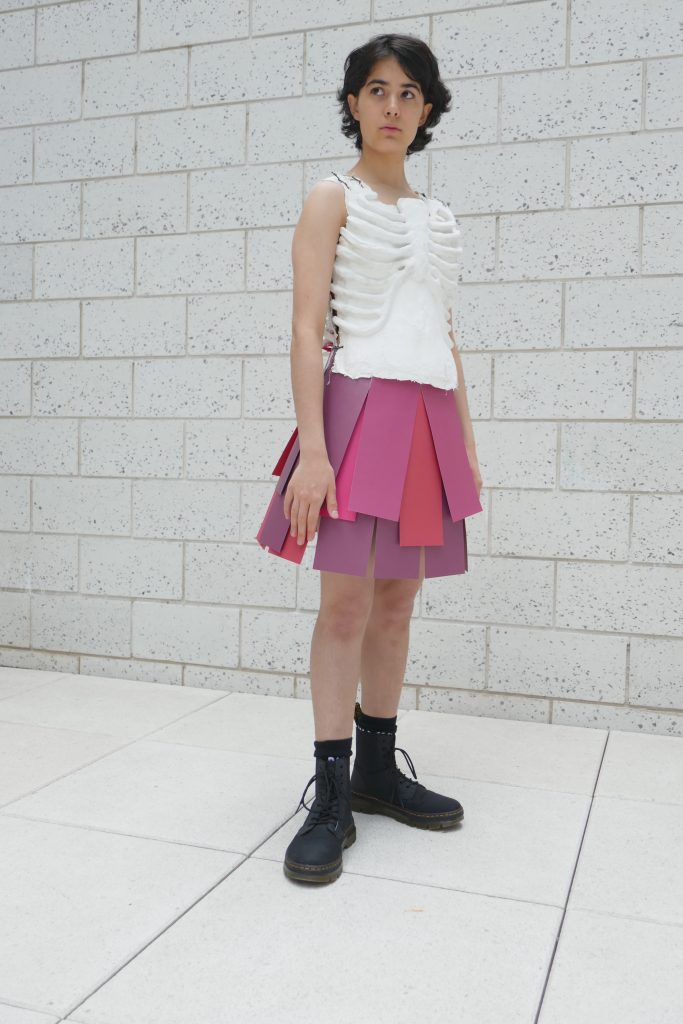 Fried worked tirelessly to aid designers from home. She, along with Lily Greenberg (VI), mailed chicken bones to Addie Rigaud (VI) to help with her dress made out of animal bones. 3D art majors met twice a week to collaborate. “We’re all friends so classes were a fun and positive environment. And there’s mentorship so there was still a constant flow of conversation and constructive criticism,” said Rigaud.