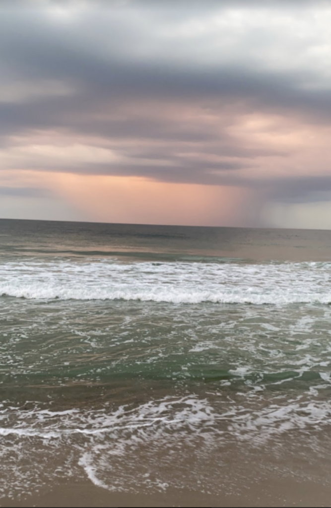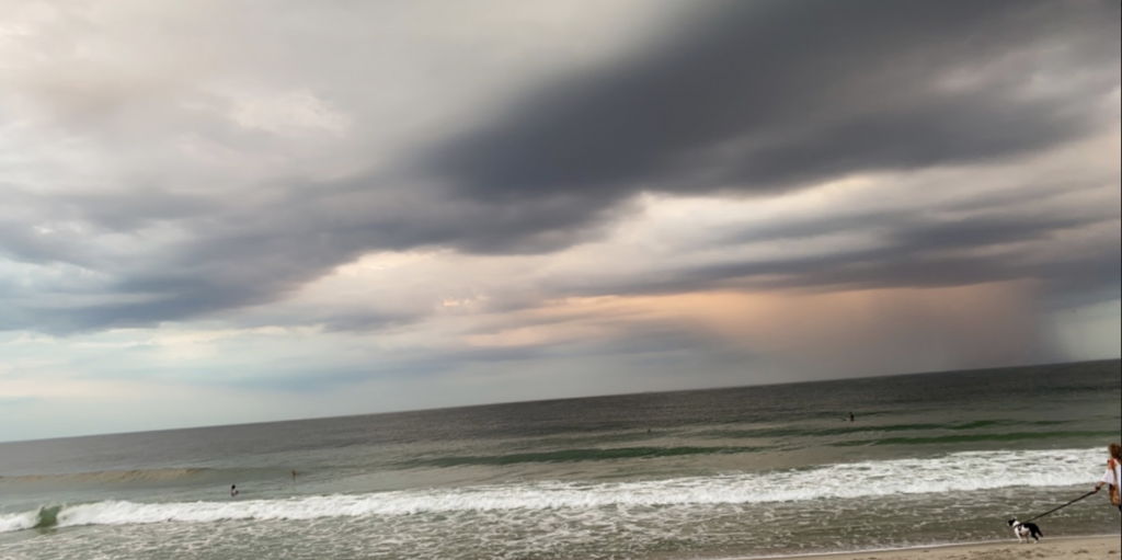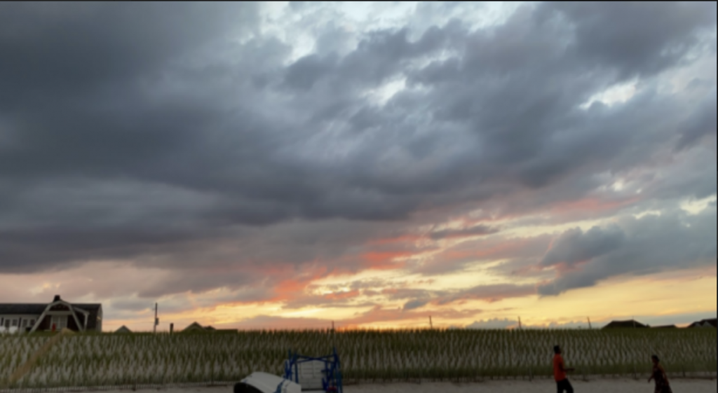 This photo was taken on July 28th, 2020 in Bay Head, New Jersey. Before the sun starts to set, the sky is a grey-ish, slate color.