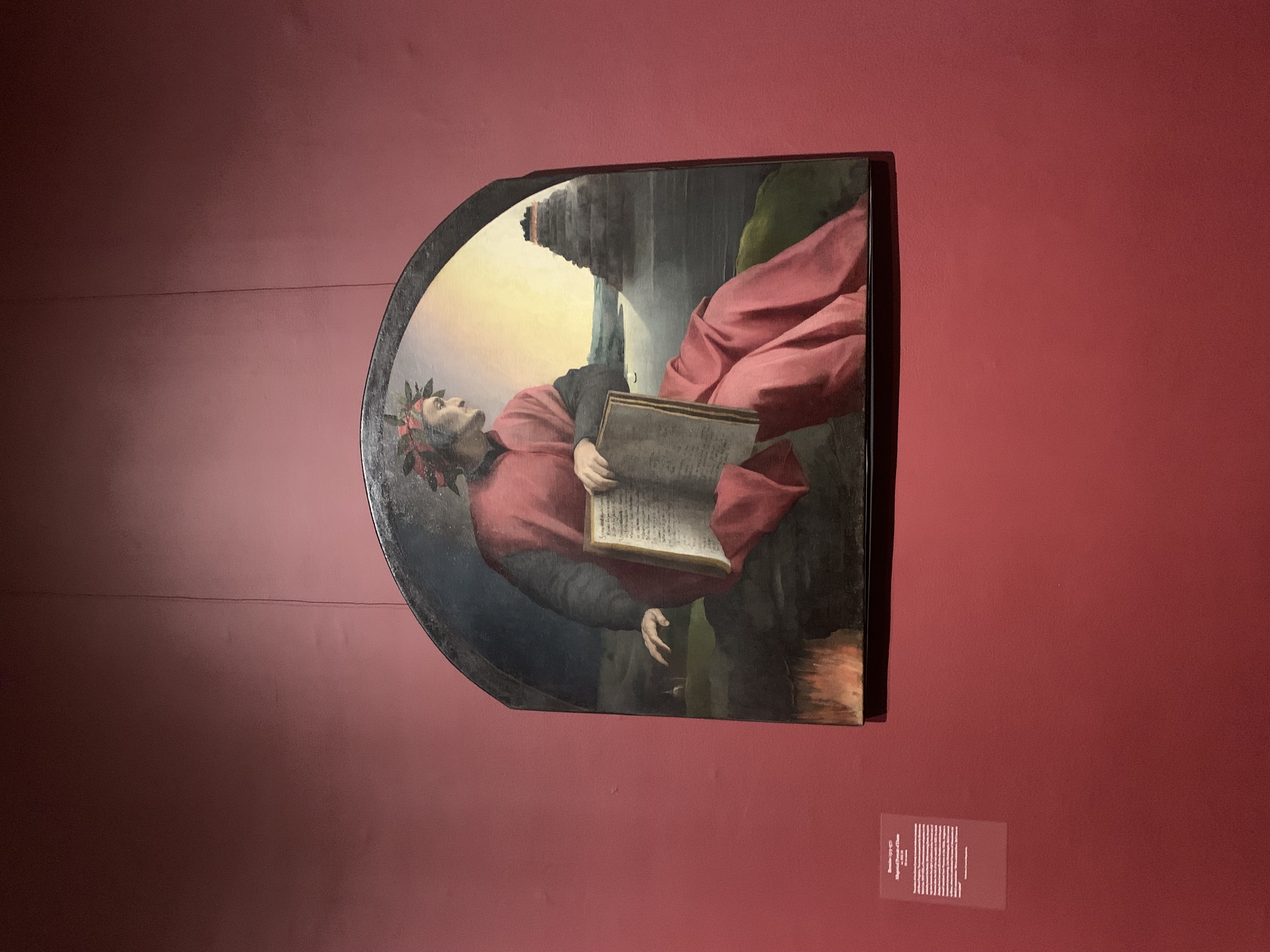 The exhibit walks us through the period through loosely themed vignettes, unpredictably shifting viewers focus from history to art history, literature, poetry and the revival of humanism, to family and succession. There’s nothing that can’t be cross-referenced or connected, fueled visually by consistent tension between differing artistic schools and styles of the artists on display. The first gallery after the introduction focuses on the years 1512 which saw the collapse of the Republic until 1532 when Alessandro de’ Medici became first duke of Florence. Florentine artists during this period reflected the traditional morals of the republic which were best represented by unembellished models of the Bible and the poetry of Dante. Portraits from this period championed purity and frankness rather than excessive decoration. Meaning was often conveyed through the inclusion of symbols or emblems which pointed towards the sitter’s social hierarchy or profession.