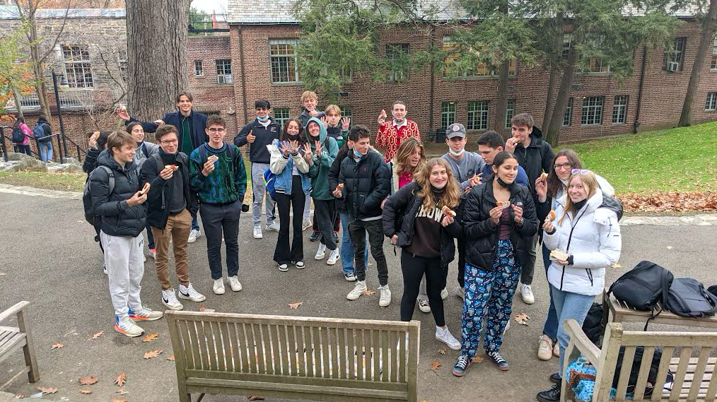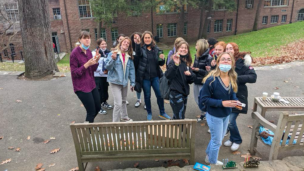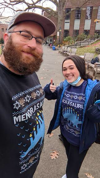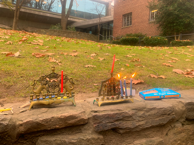 The Jewish Affinity Group celebrated the third day of Hanukkah today by inviting all students to light a menorah and enjoy jelly donuts on the quad. Faculty Advisor Roy Blumenfeld taught participants the song “Ocho Kandelikas” which is in Ladino – sometimes referred to as Judeo-Español – an old Jewish dialect of Spanish spoken by his grandparents. Chag Sameach!