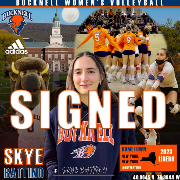 Battino began creating and posting highlight videos in eighth grade and emailing colleges during late freshman year. Throughout Battino’s volleyball career she visited a great deal of prestigious schools to play at their camps and attend their recruiting showcases. She found Bucknell from playing at said college camps. Her decision to play for Bucknell was partially influenced by a coach and teammate playing for Bucknell. Bucknell has both a Division 1 volleyball program and rigorous academics. She chose Bucknell because it was the perfect balance for culture, community, education and athletics.