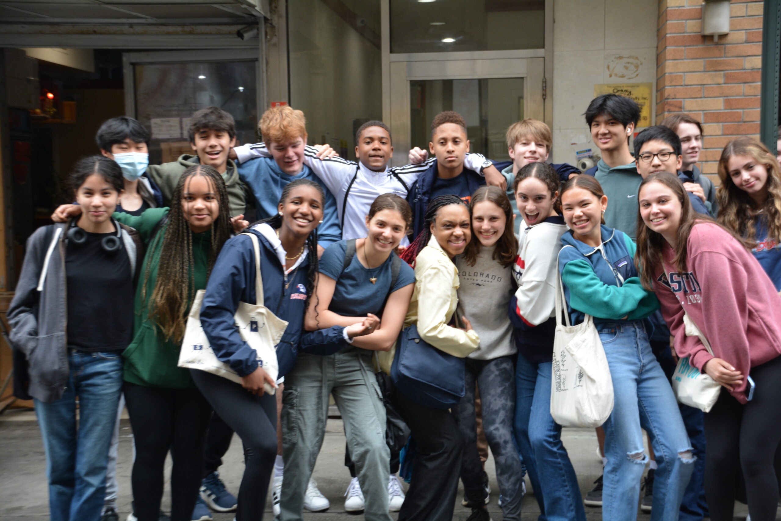 I was the first one to show up, which was surprising considering my usual affliation for being late.  The museum is in the heart of Chinatown and I took a minute to look around the neighborhood.  Finally, I saw one of my teachers, Ms. Paterson winding her way through the sidewalk toward me.  She was wearing a bright white coat and she was hard to miss.  We both agreed that it is so rare that we actually see the greatest city in the world, despite living in it.  The field trip was already giving us so much exposure to the city.  Nearing our time to enter, the stragglers joined the group and we headed inside.  Not before taking a quick group photo!