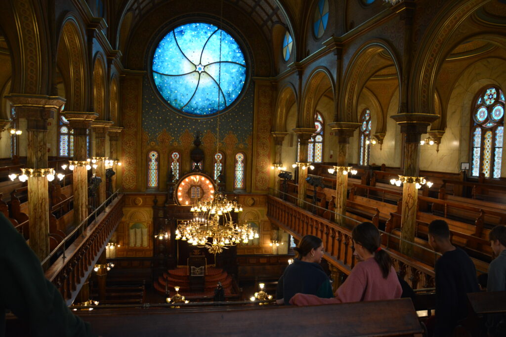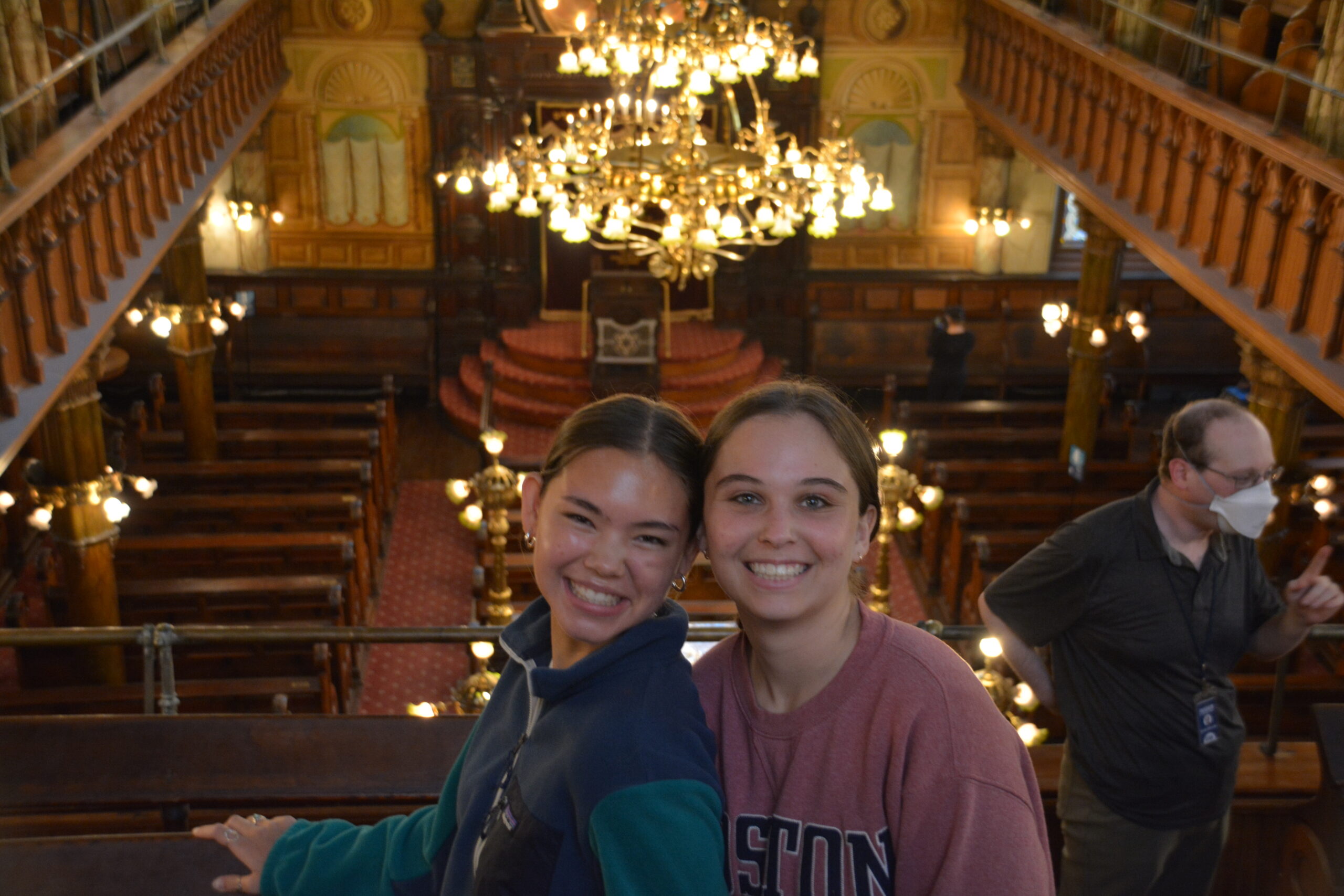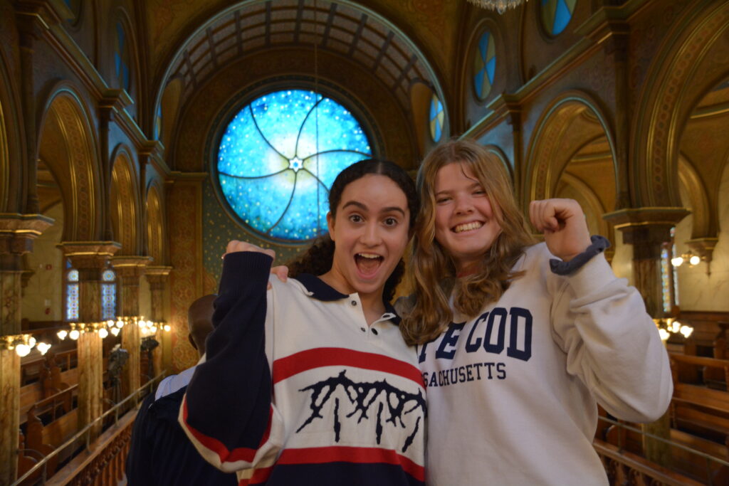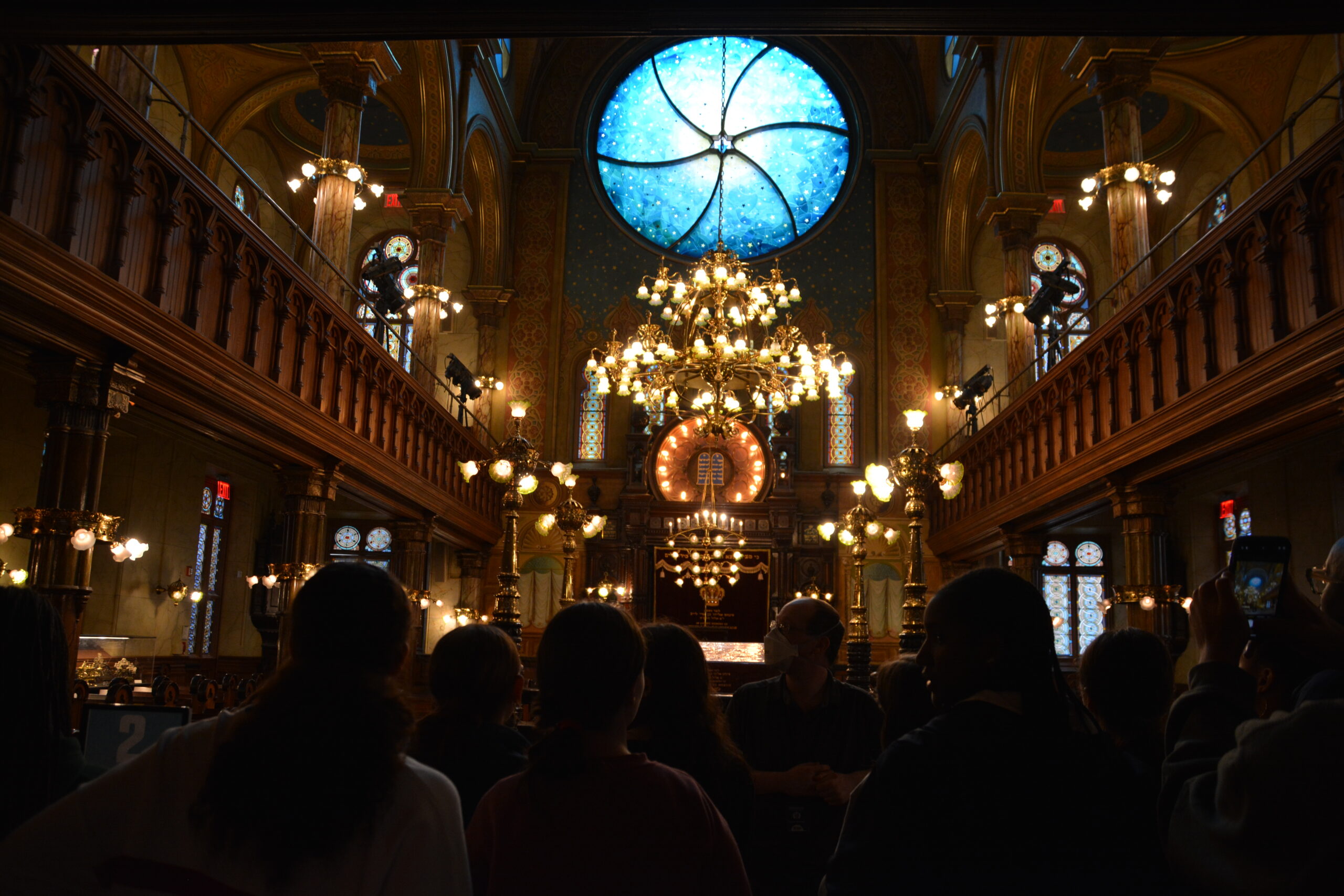 After the menorahs, Scott led us up the stairs where we filed into the front rows of the balcony.  Explaining the history of the balcony Scott said, “[the balcony] was where the women and children would sit.  The men wanted to be on the ground because it is closer to the ark.  On the railing of the balcony they would hang curtains so the women would not distract the men,”  That gained some laughs from the audience.  Scott continued, “Well the women thought this was preposterous and they tore the curtains down!”  After his brief history Scott thanked us profusely for coming and we applauded.  Ms. Paterson stood quickly and announced that we needed to be back in an hour and we broke off into groups for lunch!