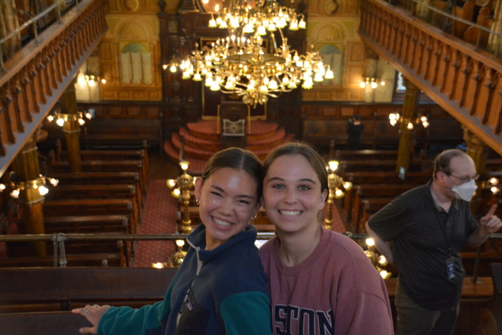 After lunch, we met outside the synagogue and began our walking tour of the neighborhood.  We started at a building behind the synagogue that used to be a bathhouse (mikvah) run by a woman.   At one point she began to talk about how women would bathe before and after they began menstruating.  Stopping herself she said, “Boys close your ears for this.” Ms. Paterson interrupted, “Absolutely not.  Boys open up your ears.  You can hear this.” Everyone chuckled and Ms. Paterson continued saying, “You wouldn’t be here without it!  So listen up!”  At this, everyone burst into laughter.  Even the tour guide! “Boy, you guys must be a progressive school,” she said.  If only she knew!