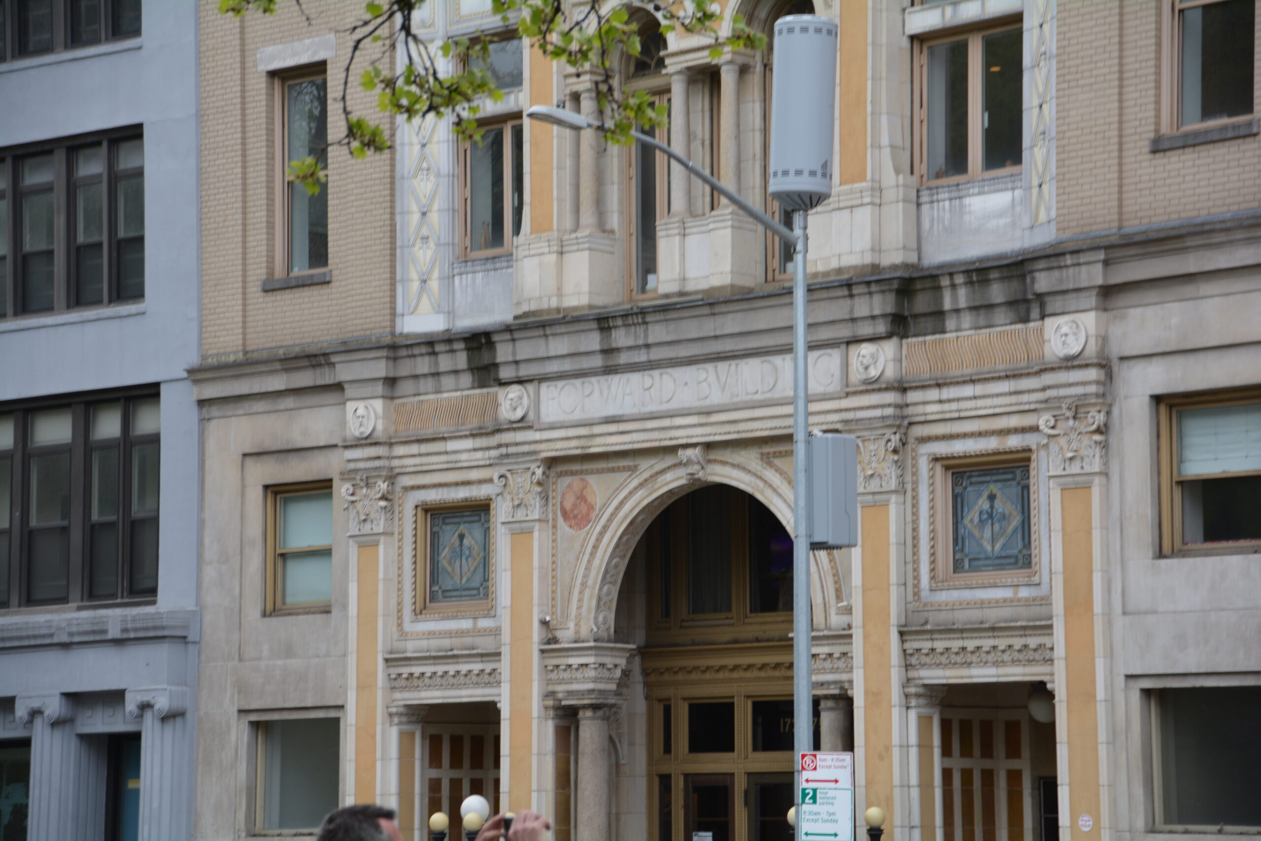 We reached our next destination, which was a gorgeous and tall stone building. It seemed very expensive and stuck out like a sore thumb compared to the rest of the neighborhood. Our tour guide explained that this used to be a bank.  It was called the Jarmulowsky Bank.  The bank was turned into a very expensive hotel.  The cost for a room is almost 800 dollars a night!  It was shocking to see such a superfluous building that could only be used by those lucky enough to have the costs placed in a neighborhood of lower-income families.