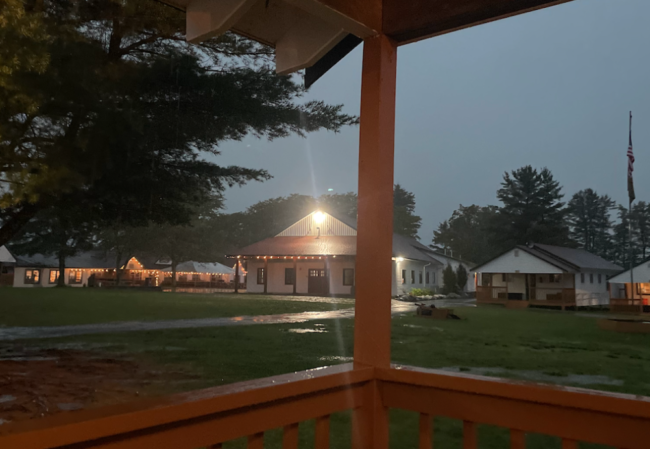 After dinner, we all went back to whatever activities we were most invested in and waited for 7:30, when we were supposed to have a campfire. I was playing Uno with my friends when the rain clouds started to roll in. We all trudged into the theater and continued playing, but by the time 7:00 rolled around, we weren’t sure if there would even be a campfire. As we saw the lightning and heard the thunder, it seemed that our plans for a campfire were foiled.