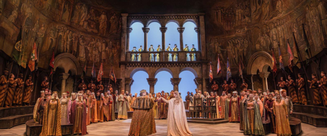 Otto Schenk’s classic production, which opened in 1977, continues to delight as one of the Met’s most successful stagings. It presents “Tannhäuser” in a very traditional manner, with picturesque scenery for the Venusberg scene and architecturally impressive sets for the great hall in Act II. While old, the production fulfills its purpose, providing a robust foundation for a star-studded cast.