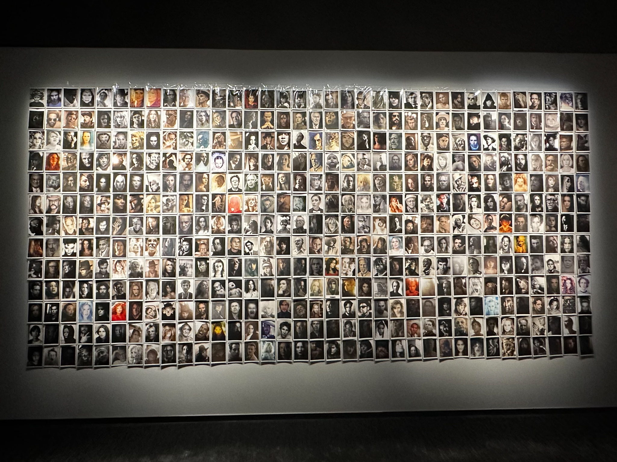Ockenfels constantly pushes the boundaries of what’s possible by using a wide array of cameras, lenses and lighting instruments. Every one of his portraits is an experiment. Much like a scientist, Ockenfels records his findings in journals he keeps in stacks around his Los Angeles studio. What began as a physical record of the camera and technology he had used to capture his subjects became a way for Ockenfels to document his mental state during his many hours of shooting. In “Introspection,” many of his journals are presented alongside his more “traditional” works. (Pictured on the left-hand side are a few dozen of Ockenfels’ journals on display as part of the exhibition.) What was made clear during my visit to the exhibition is Ockenfels’ lack of “style” in the traditional sense.