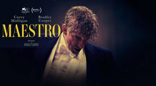 “Maestro,” directed by Bradley Cooper, tells the story of what makes the conductor Leonard Bernstein tick, as an artist and as a man: his quick rise to fame, his prodigious talents, and his place as an icon in American culture, bridging classical and popular worlds. The film centers around Bernstein’s inner complexities and his relationships with his wife, children and gay lovers. At the heart of this film is both a joyous and tormented portrait of the artist and a portrait of a marriage.