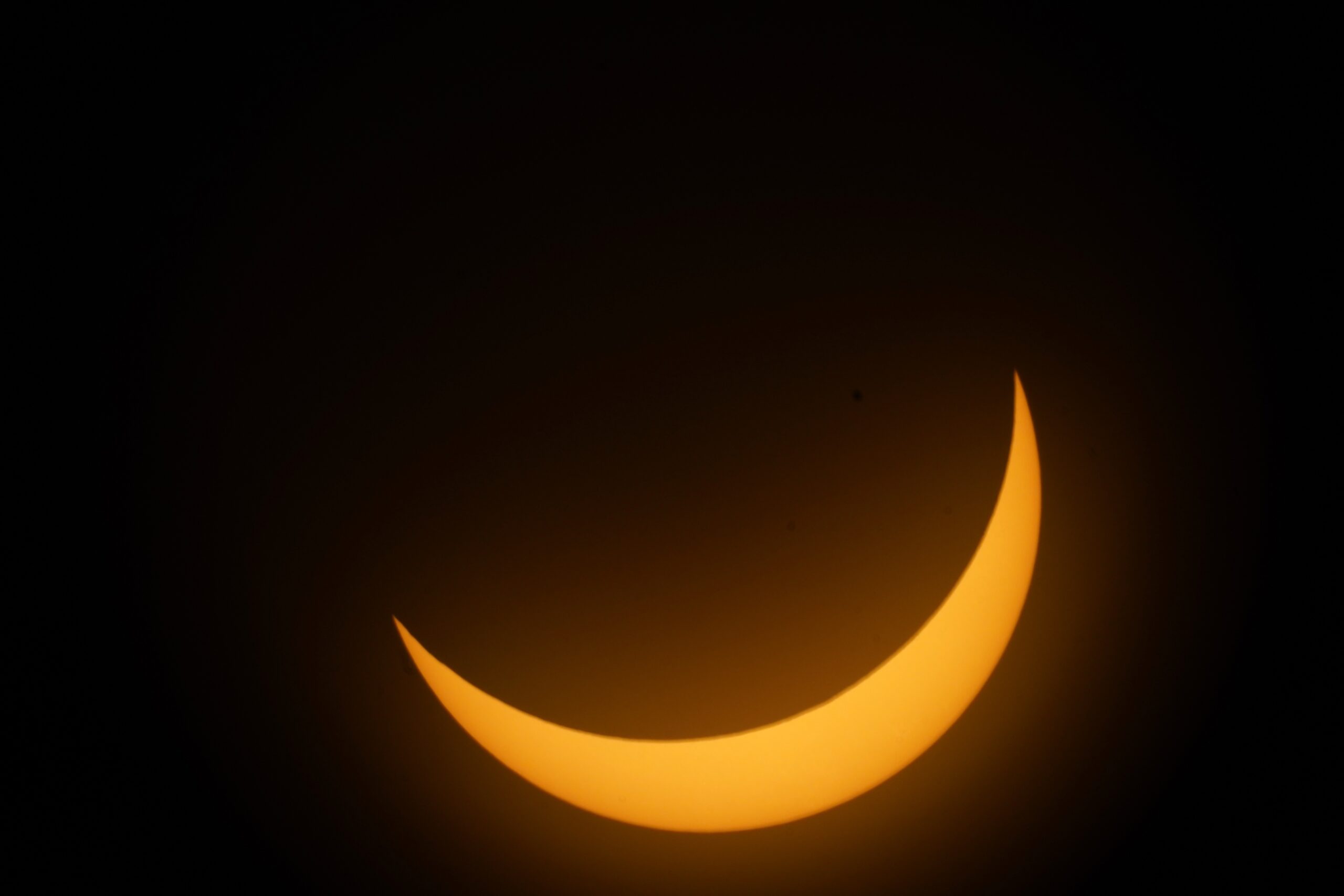 An hour passed and only a sliver of the sun remained visible. The sky began to dim as if someone pulled down the slider on a light switch, triggering the automatic street lights. The air temperature went cold. Like clockwork, thousands of people put on their glasses and looked up at the sky. Cheers echoed throughout the courtyard getting louder and louder as the moon slid closer to covering the entire face of the sun.