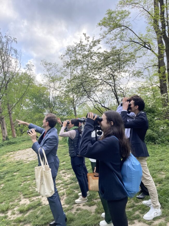 The question asked by everyone (including probably Felix Adler had he attended his celebratory event): Why on EARTH would you wake up SO early to birdwalk? Everyone had a different answer: Yadna Prasad (Form VI) explained, “I always kinda wanted to do it.” they trailed off and smiled, “But the early mornings.” Prasad decided to join the 2024 walk because, as a senior, it’s their final opportunity to do so. Underclassmen with years of possible bird walks lying ahead had different reasonings. Hannah Saez-Zadoff (Form IV) wanted to “be in the park early in the morning to get some fresh air, especially before sitting in a stuffy auditorium.” Usdin, a first-time bird walker, explained her motivation succinctly: “We’re here for a good time not a long time.”