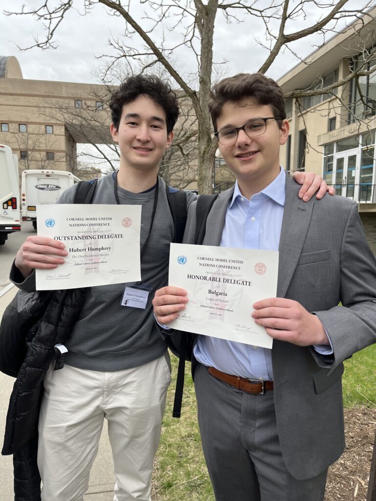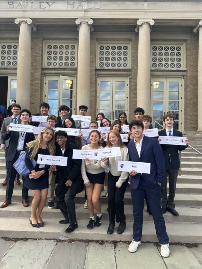 On Thursday, April 18, when Fieldston’s illustrious Model United Nations club arrived in Ithaca in Upstate New York, after a long and uneventful drive from school, they had no clue about what would be in store for them over the next three days. In that time, the shuttles would strand the group multiple times by the shuttles from the hotel to Cornell’s campus and back, forced to scavenge for food (shout out to the Applebee’s at 2300 N Triphammer Rd, Ithaca, NY 14850) and find a way to stay up long enough for midnight crisis. Yet despite these difficulties, the Fieldston MUN club emerged even stronger, reinvigorated by the bonds forged during these troubling times. Hosted by the Cornell International Affairs Society (CIAS), the Cornell Model United Nations Conference (CMUNC) is one of the most important college conferences in the country, and fortunately, Fieldston Mun club members had the opportunity to go.