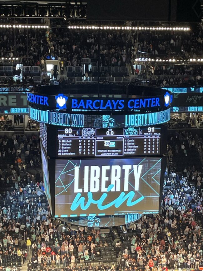 According to the Associated Press, the game generated over $2 million in ticket revenue, a WNBA record. From the moment my family and I exited the 2/3 train station, I understood why: I had never seen so many fans at a women’s sporting event. In 2019, the last time I attended a NY Liberty game, the stadium closed the top row of seats, many sections sparsely held fans and wildest of all, I managed to secure a courtside seat. Since, the NY Liberty underwent a complete rebuild going from league bottom to championship contender, but nothing and no one attracted more fans to Barclay’s than Caitlin Clark.