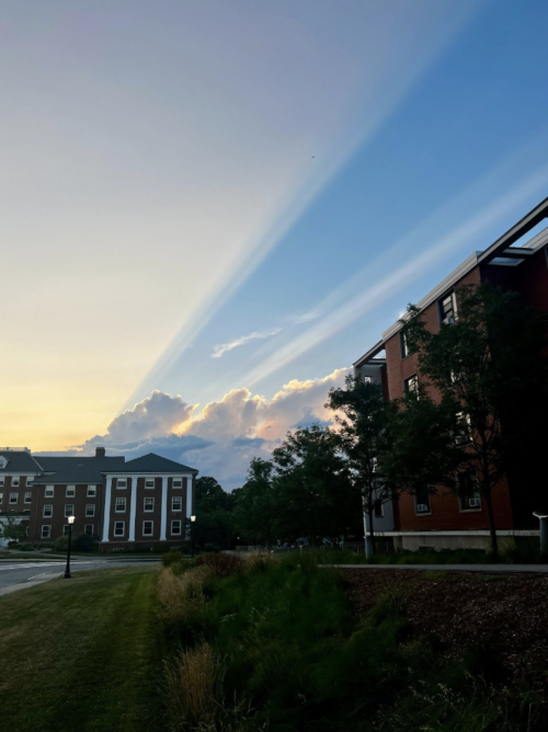 I went to Tufts this summer for a three-week art pre-college program. From day one, I had my eyes on the sky and immediately noticed it was special. Somehow, just a few hours away from home, the sky looked different. There were deeper and stronger pinks and purples. The clouds were a bit more cartoonish, and everything felt more picturesque.