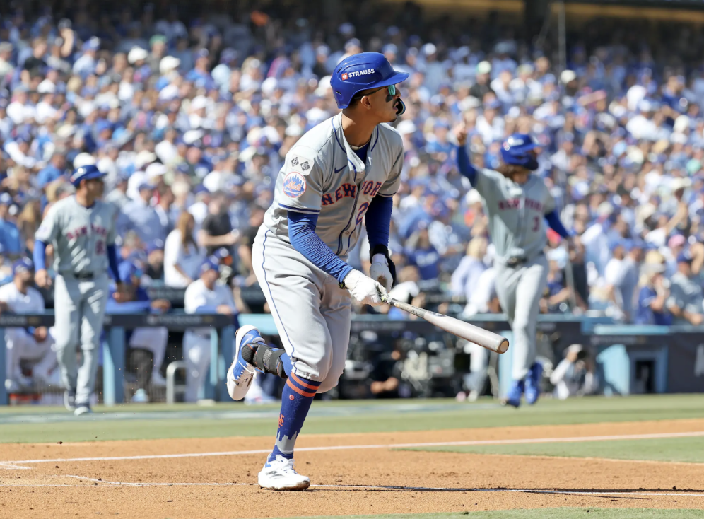 Mark Vientos’ grand slam in the second inning of Game 2 gave the Mets a 6-0 lead over the Dodgers. (Source: Charles Wenzelberg)