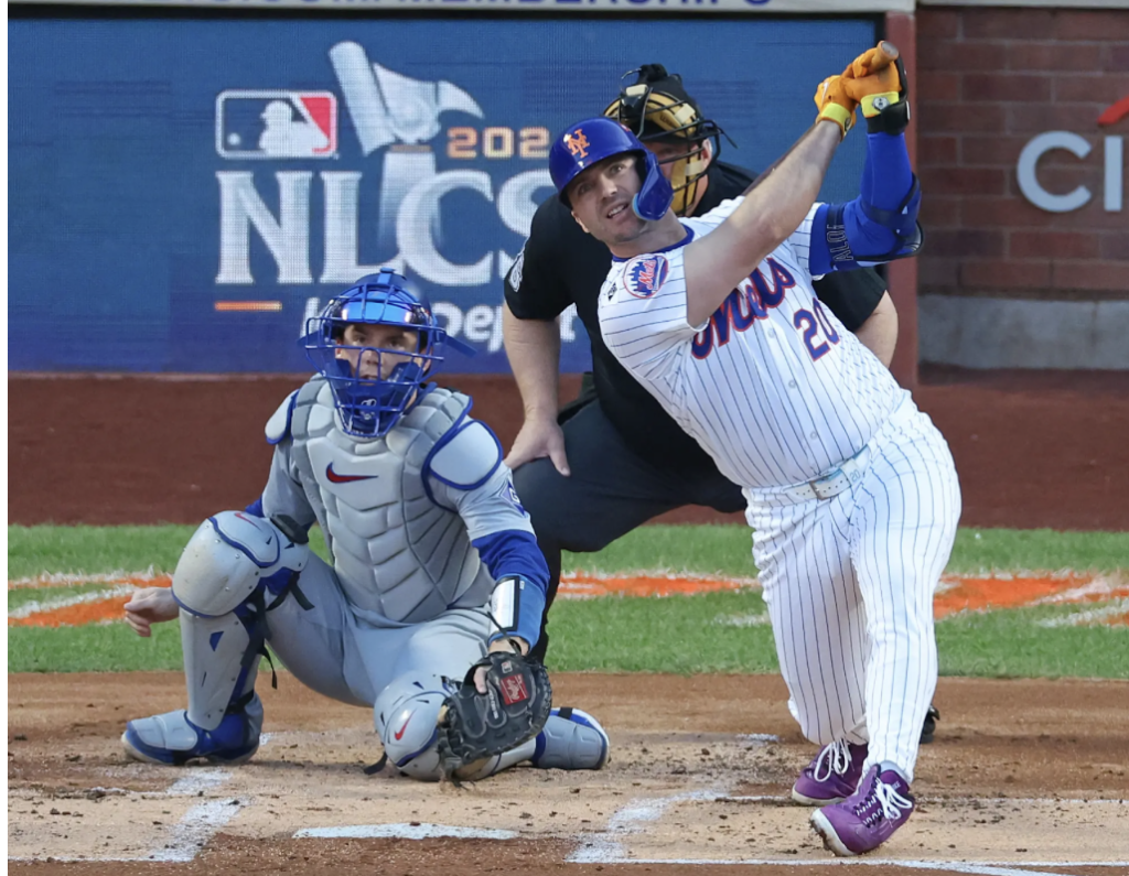 A game away from the World Series, Jack Flaherty couldn’t stop the bats of the Mets.  After going seven shutout innings in Game 1, Flaherty gave up eight runs over three innings in Game 5.  Pete Alonso started the scoring with a three-run home run in the first inning, and the Mets scored five more in the third.  Rookie outfielder Andy Pages hit two home runs in the game for the Dodgers, but the Mets prevailed, winning 12-6 and forcing a flight back to California.  Ryne Stanek earned a win in relief and Flaherty took the loss.