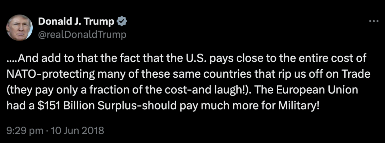 The ultimate irony is that, although the U.S. has been the only example of benefiting directly from the invocation of Article 5, the future of NATO appears to be in doubt now that Trump has won a second term in office as the 47th President of the United States.