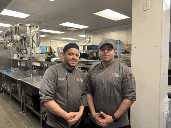 Cooking healthy, nourishing food is a priority for the kitchen staff. “When we make the menus, we really sit down and look at how the menus flow into the week and how your day is gonna roll from your breakfast to your lunch and how it creates a fulfillment for you for the day,” explains Van Tassel. “It’s important to us that you go home happy and that you have a good meal during the day.”