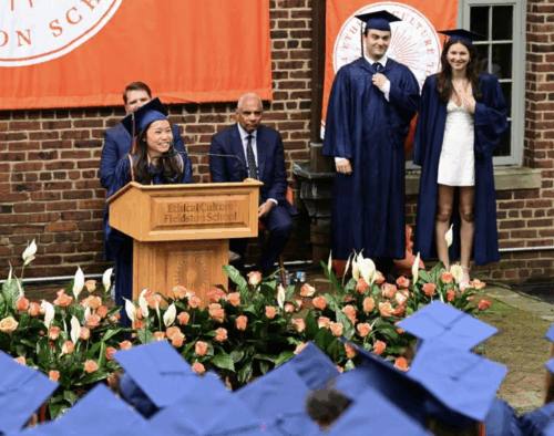 So, to the class of 2025 (you know), I am so grateful that we experienced Fieldston together. We’ve seen almost every version of ourselves, and I can’t wait for you to vote for me as president in 17 years. Thank you, and congratulations!