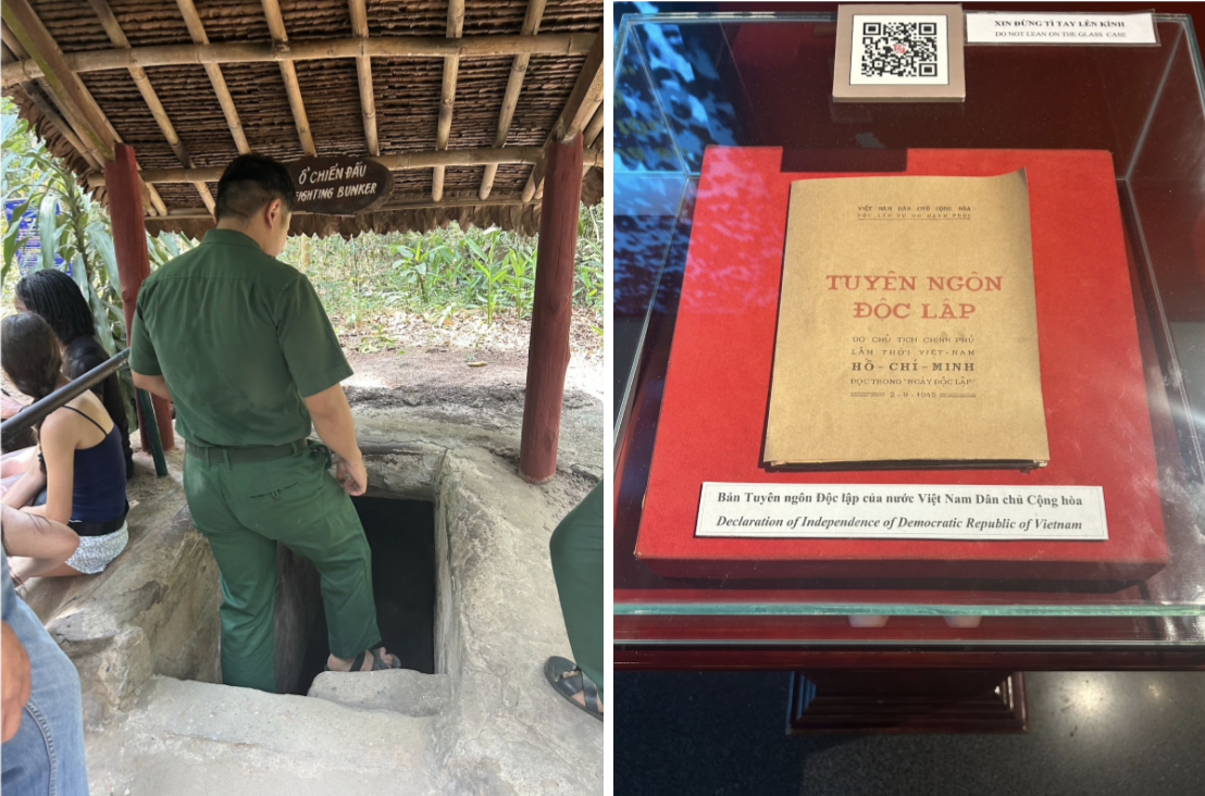 On the 20th, we saw a botanical garden in Cambodia and flew to Ho Chi Minh City, Vietnam, where we ate dinner at the former home of the last president of South Vietnam, Duong Van Minh. On our 6th day, we visited the Cu Chi tunnels, where we got to learn about the Viet Cong before visiting the Reunification Palace and the War Remnants Museum.