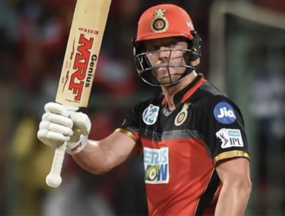 AB de Villiers Raising his bat after scoring Half a century Source: Times of India