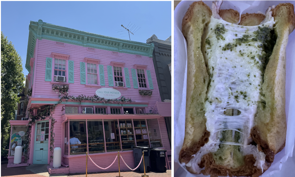 On an early road trip to Washington D.C., I started off strong with a pesto mozzarella grilled cheese on challah bread from a deli called Call Your Mother, a Jewish Deli. You may wonder why the name is so specific – that is because the owners believed their community needed more carbs! The sandwich’s unique mix of home-made challah bread, sharp, garlicky pesto and soft, melty mozzarella cheese gave it a comforting feel that made me want to savor every bite. The challah’s sweetness balanced the richness of the cheese, creating both a familiar and new flavor combination. By the time I finished, I was stuffed and, paradoxically, already wanted another!