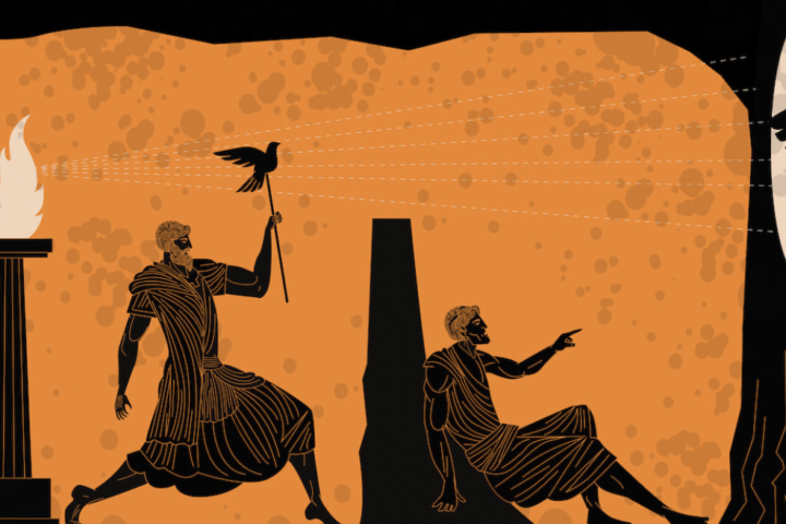 MoreImagine you are trapped in a dark cave, chained to a wall with no way to turn your head. All you can see are the flickering shadows of objects, puppets, cast on